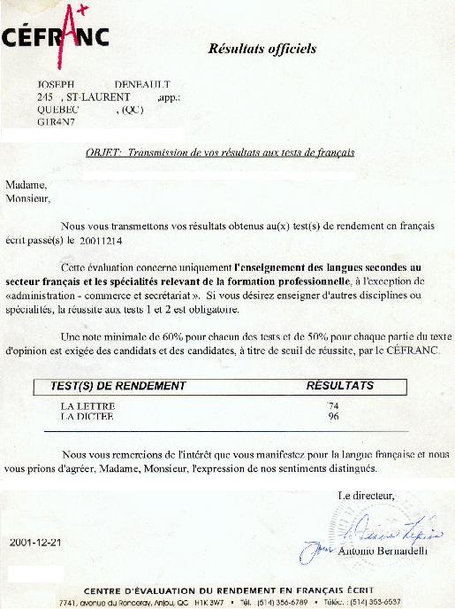 TEST de français du CÉFRANC de Joseph Deneault